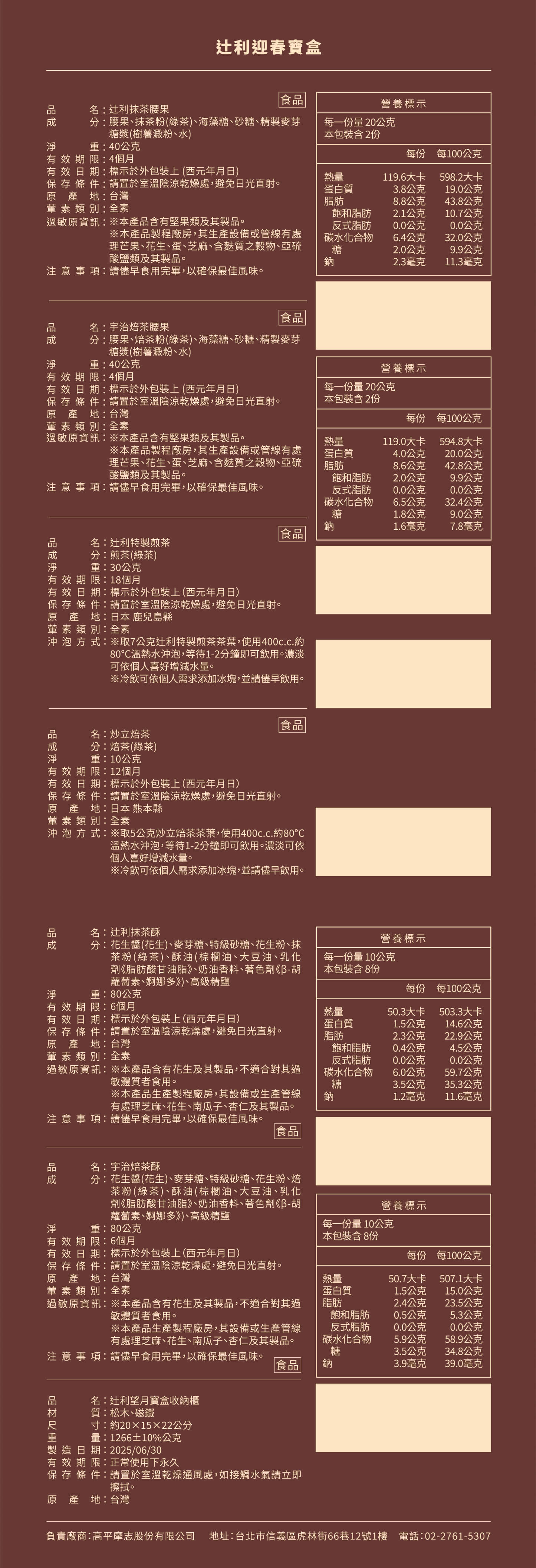 - 辻利抹茶腰果:2026/4月後 、宇治焙茶腰果:2026/4月後