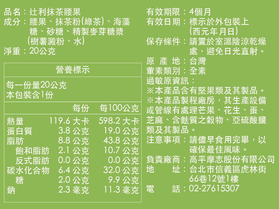 辻利抹茶腰果:2026/04/04、宇治焙茶腰果:2026/04/04