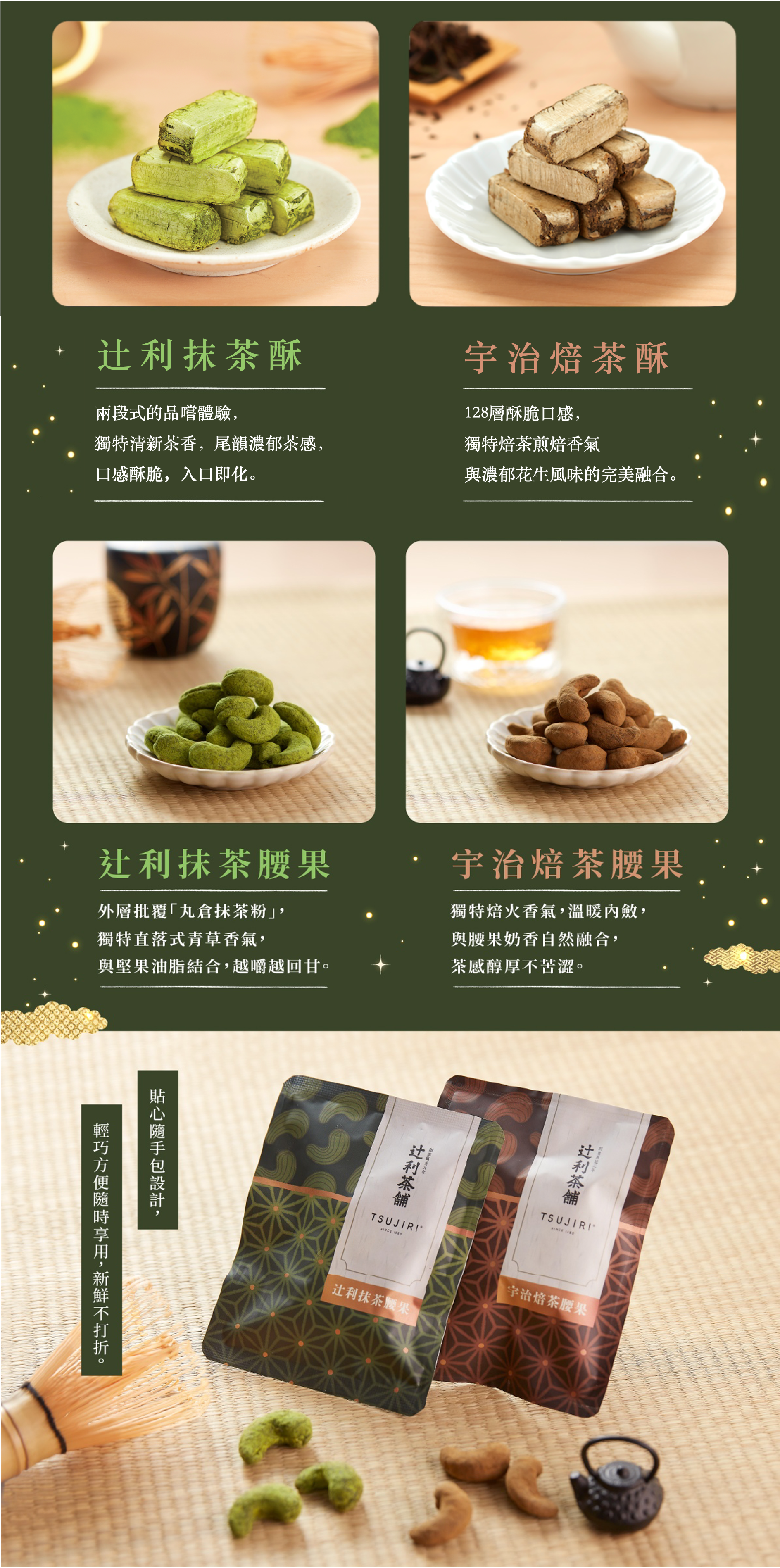 (辻利抹茶腰果X1、宇治焙茶腰果X1、辻利抹茶酥X1、宇治焙茶酥x1)